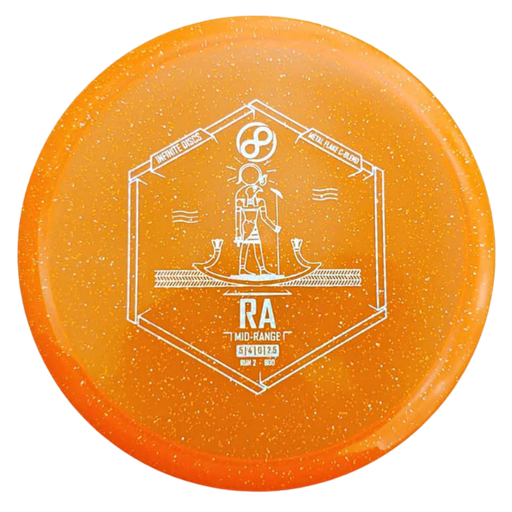 Infinite DiscsOriginal price $14.99 - Original price $14.99Original price$14.99$14.99 - $14.99Current price $14.99| /The Infinite Discs Ra in Metal Flake Glow C-Blend plastic delivers this reliably overstable midrange in a premium blend built for durability, visib...