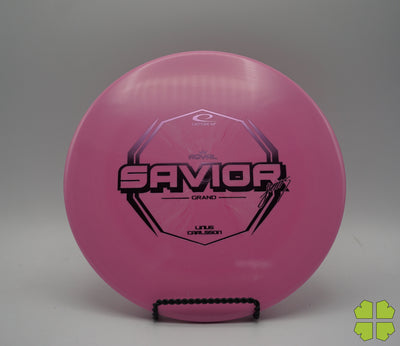 The Savior was designed to fill the gap in our disc lineup as an overstable approach disc. The disc is a bit of a hybrid between a midrange and a putter, resulting in a ‘neat’ grip and a flat upper surface ideal for forehand shots.