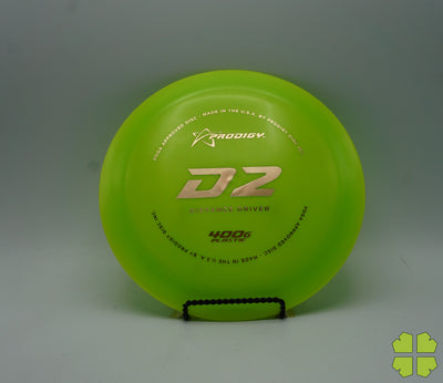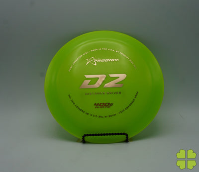 The Prodigy Disc D2 is a very fast, over stable driver that is designed for strong throwers. Just slightly less stable than the D1, this driver is good in all conditions and flies just as well into the wind as it does with the wind. It is an extremely reliable driver with the least amount of side-to-side movement of any driver on the market. It is equally as long, twice as forgiving and has a much gentler finish.