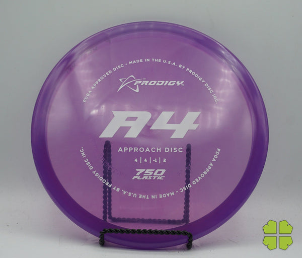 The Prodigy Disc A4 is the latest in our range of approach discs. The A4 is a slightly over stable disc that fills the distance gap between midranges and putters and is designed for all skill levels. The disc is consistent and reliable in moderate wind conditions and perfect for short approach shots. It works equally as well for backhand or sidearm throwers. The A4, like the A3 has a bead on the rim. You can expect it to fly slightly less stable than the A3 with an extra 40-50 feet in distance.