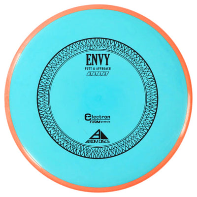 In Electron Firm, the Envy maintains its signature straight, torque-resistant flight. Thrown flat, it pushes forward on a stable line before finishing with a crisp, reliable fade. The firmer plastic enhances control on putts and helps the disc handle power better on approaches, all while offering improved chain interaction for confident catches. As it beats in, it becomes slightly more workable without losing its trusted stability.