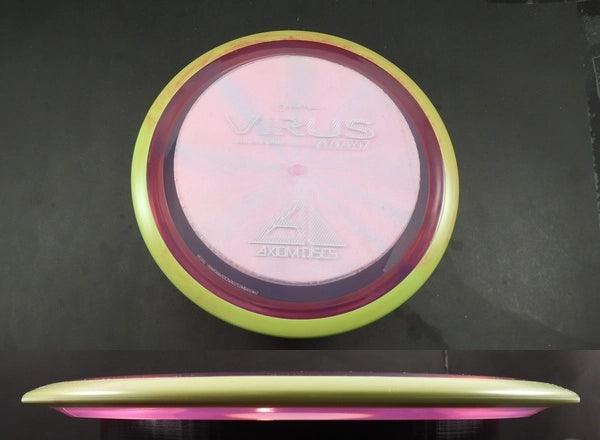 The Axiom Virus in Proton plastic is a fast, understable distance driver designed for smooth, effortless distance and creative shot shaping. Sitting in the controllable speed-9 class, the Virus offers easy turn and strong glide without feeling overly touchy. Proton plastic provides a durable, translucent finish with a firm, clean feel in the hand, helping the Virus maintain consistent flight characteristics round after round.