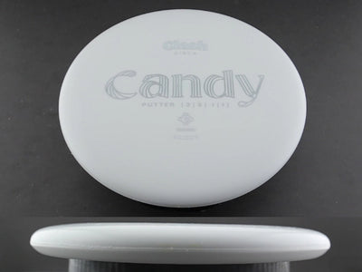 The Hardy Candy brings Clash Discs’ beadless, point-and-shoot putter into a firm, tacky plastic blend designed for clean releases and consistent control. Hardy plastic offers a slightly rigid, grippy feel that works well in all temperatures, giving players confidence whether they’re putting inside the circle or shaping a gentle turnover approach. With a slightly slimmer profile than the Popcorn, the Candy sits comfortably in the hand and delivers a smooth, effortless release.