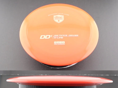 The Discmania DD1 in S-Line plastic is a fast, glidey distance driver designed for smooth, controlled distance with a reliably workable flight. Sitting between the DD and the DD3 in stability, the DD1 offers an ideal blend of turn, glide, and fade—making it a go-to option for players who want long, effortless flights without needing maximum power. The premium S-Line plastic provides excellent grip, durability, and a slightly flexible feel that enhances both comfort and consistency.