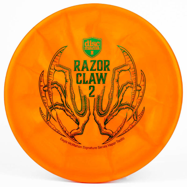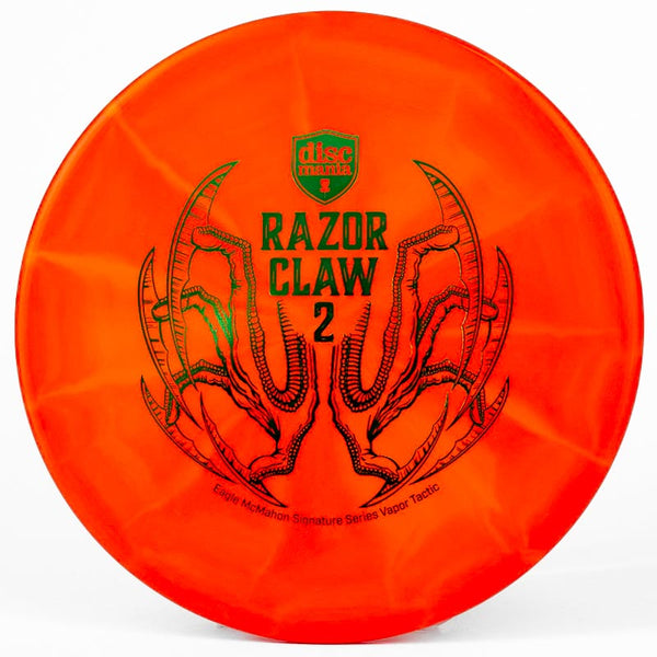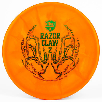 The Discmania Razor Claw Vapor Tactic is one of Eagle McMahon's Signature discs that comes with an awesome stamp and ultra-premium plastic. Discmania's Vapor plastic is an insanely durable premium-grade plastic that will hold its stability for longer than most other plastics and still has decent grip.
