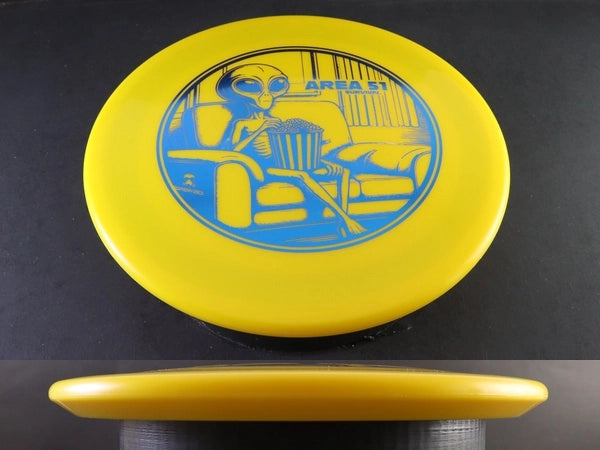 The Survival Area 51 flips up easily from a slight hyzer, glides straight, and finishes with a gentle, forward-moving fade. Lower-power players will find it to be a forgiving, straight-flying driver, while experienced throwers can carve long turnovers, hyzer-flip bombs, or touchy standstill shots through technical gaps.