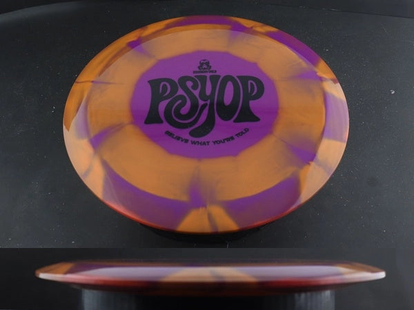 The Psyop delivers a workable flight with high glide and controllable turn, finishing with a soft, predictable fade. Thrown flat, it drifts gently before settling straight; on hyzer, it flips to flat and pushes forward. It’s a versatile fairway driver for smooth hyzer-flips, long turnovers, and laser-straight control shots.