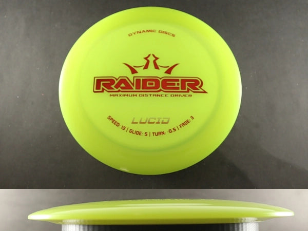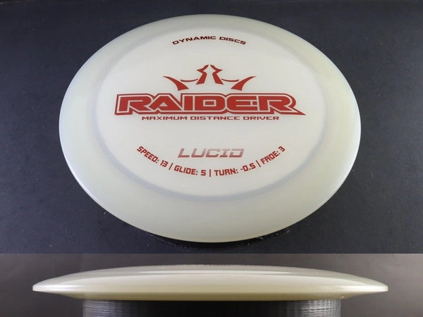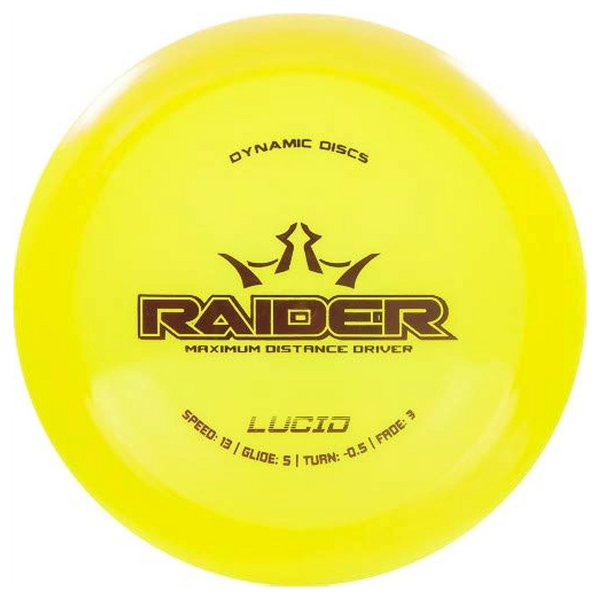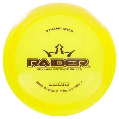 The Lucid Raider is a high-speed distance driver built for power, consistency, and controlled distance. Crafted from Dynamic Discs’ premium Lucid plastic, it features a stiff, translucent feel that provides excellent grip and incredible durability. This version of the Raider holds its stability longer than base blends, making it a dependable choice for players who demand both distance and reliability off the tee.