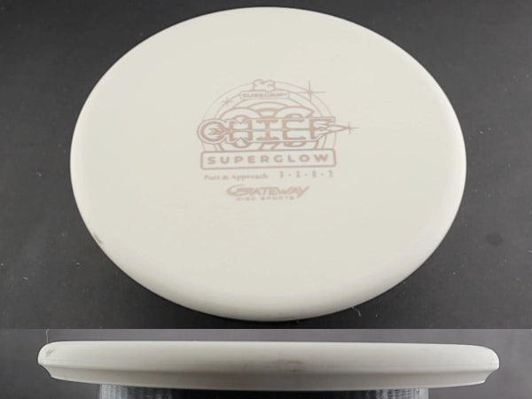 The Gateway Chief OS in Sure Grip Superglow plastic is an overstable, beadless putter built for controlled power, confident approaches, and reliable fade—day or night. Designed to handle torque and headwinds with ease, the Chief OS provides a flat-topped profile and smooth release that feels comfortable in the hand for both backhand and forehand throws. The Sure Grip Superglow plastic offers a tacky, slightly flexible feel with a bright, long-lasting glow, making it a go-to option for glow rounds and low-light conditions.