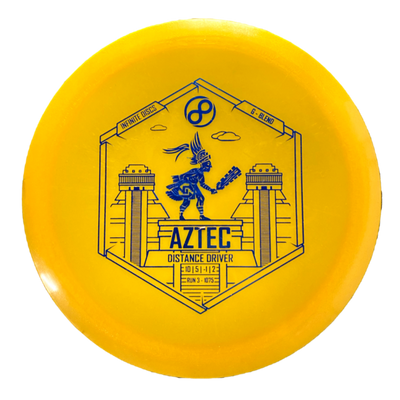 The Infinite Discs Aztec in G-Blend plastic brings this dependable distance driver into a soft, gummy premium blend known for its exceptional grip and slightly straighter flight. G-Blend has a flexible, almost rubbery feel that sits comfortably in the hand and offers a clean release—even in wet or cold conditions. This version of the Aztec tends to fly a bit less stable than S-Blend or C-Blend, giving players easier hyzer-flips, longer glide, and more workable turn.