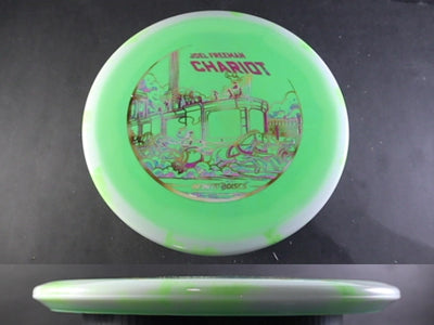In Signature Halo S-Blend, the Chariot flies true to its numbers: straight with excellent glide and a dependable, gentle fade. The Halo rim provides a slight stability bump, helping the disc hold hyzers longer, resist early turn, and perform predictably in light wind. Whether thrown flat, on hyzer, or on slow-turning anhyzers, the Chariot maintains its angle and finishes smoothly without dumping.