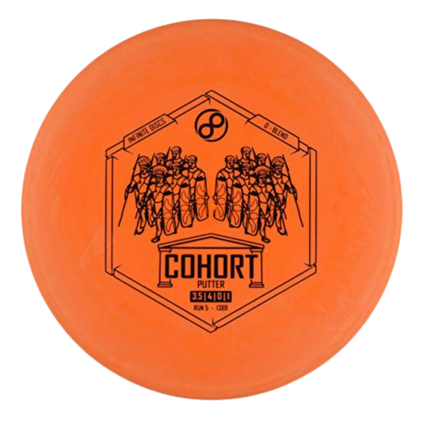 The Infinite Discs Cohort in D-Blend plastic offers this straight, dependable putt-and-approach disc in a base blend with outstanding grip and a comfortable, slightly chalky feel. D-Blend provides excellent control right out of the box, making it ideal for players who prioritize touch, precision, and clean releases. This version of the Cohort maintains its classic neutral-stable flight, excelling as both a putting putter and a reliable throwing option for shorter drives and controlled upshots.