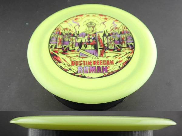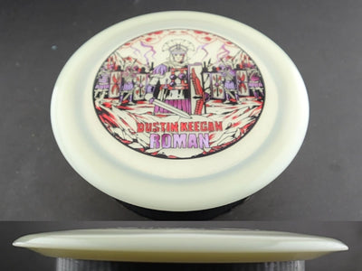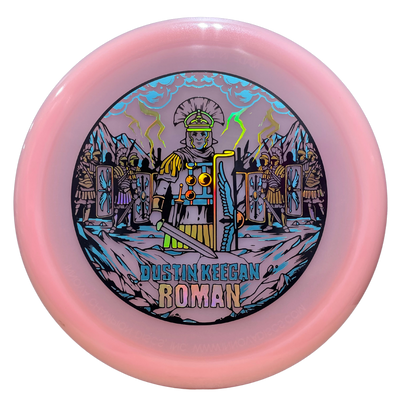 In flight, the Signature Glow C-Blend Roman holds a straight, forceful line with no high-speed turn before finishing with a strong, dependable fade. The firm Glow C-Blend plastic maintains overstability even after heavy use, making this run especially reliable for headwinds, power forehands, and controlled hyzer shots. It’s a true workhorse for players who value predictable fade and long-lasting consistency.