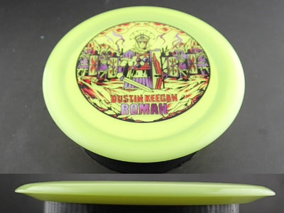 The Infinite Discs Roman in Signature Glow C-Blend plastic delivers tour-support durability and nighttime versatility in a reliably overstable control driver. Glow C-Blend offers a stiff, premium feel with excellent longevity, while the bright glow finish makes this Roman easy to track during dusk or glow rounds. As a Signature edition, this run supports touring pros and provides one of the most consistent, torque-resistant versions of the mold.