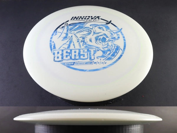 The Star Beast by Innova is a glidey, shapeable distance driver that blends premium grip with dependable stability. Star plastic delivers long-lasting durability and a confident feel—more consistent than DX/Pro while staying more workable than Champion or Halo runs.