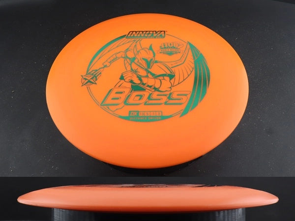 Choose the DX Boss for tailwind drives, hyzer-flips, developing long-distance form, and drives where glide and shaping matter more than premium-plastic durability. It’s also an excellent first Boss for players wanting to unlock high-speed flight without fighting too much overstability.