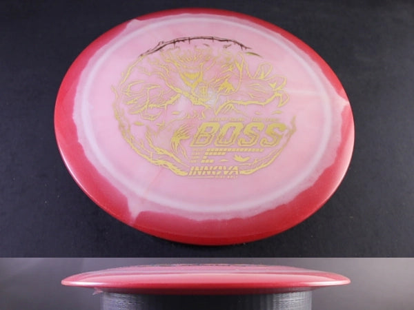 The Innova Boss in Signature Halo Star plastic delivers this iconic high-speed distance driver in one of Innova’s most premium blends. Halo Star plastic features a firmer, grippy Star core surrounded by a stunning, high-contrast halo rim. This run is known for increased durability and a touch more stability than standard Star, making it an ideal choice for power throwers who want maximum distance with a dependable, late-flight fade.