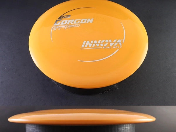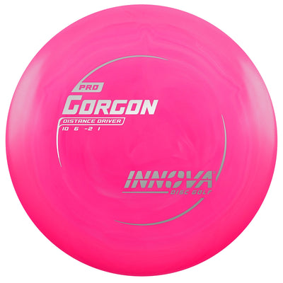 The Pro Gorgon by Innova is a glidey, understable distance driver designed for easy distance and smooth, controlled turnovers. Pro plastic provides a comfortable, grippy feel with a slightly flexible flight plate, giving the Gorgon a workable, seasoned-in flight straight out of the box.