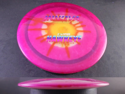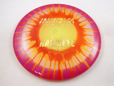 The Champion Dyed Hawkeye by Innova delivers the trusted, stable performance of the original Hawkeye with the premium durability of Champion plastic—now enhanced by stunning full-color dyed artwork. This fairway driver offers a smooth, straight flight with a gentle fade, giving players consistent accuracy and reliable control with a unique visual flair.