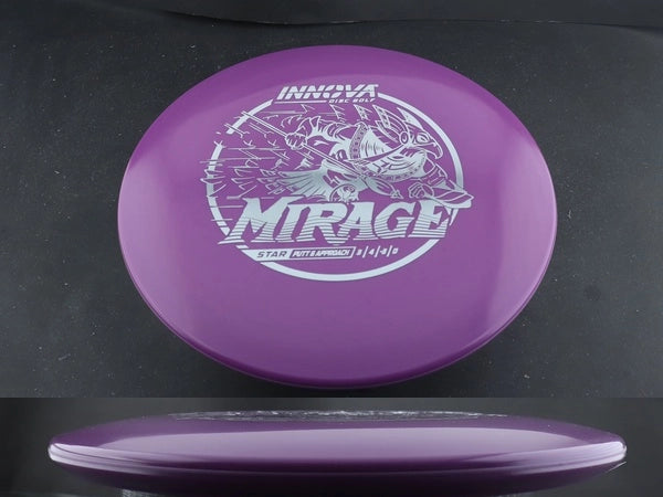 The Star Mirage by Innova is a glide-focused putt and approach disc designed for finesse, touch, and effortless control. Star plastic provides a premium balance of grip and durability, keeping the Mirage’s smooth, understable flight consistent through countless rounds.