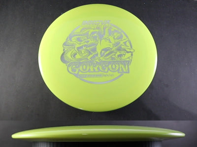 The Star Gorgon blends fairway-like control with distance driver reach. Innova’s Star blend delivers a premium mix of grip and long-lasting durability, giving the Gorgon a confident hand feel and consistent flight run after run.