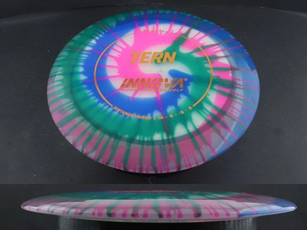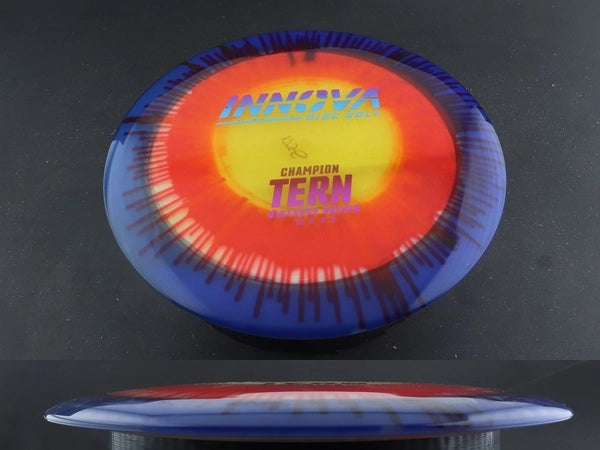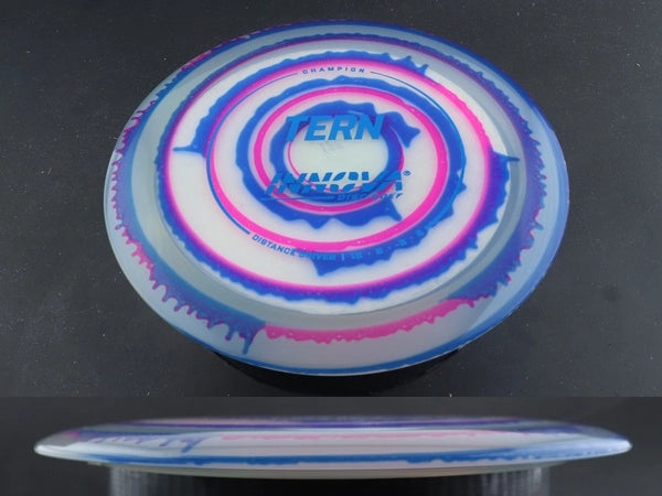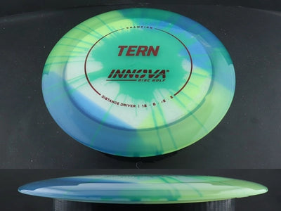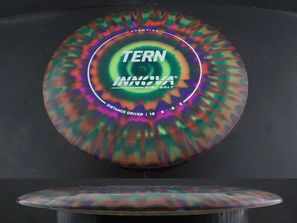 The Champion Dyed Tern by Innova combines the trusted performance of the stock Champion Tern with vibrant, full-color dyed designs that make every disc unique. Made from premium Champion plastic, it offers long-lasting durability, a slightly firmer feel, and the same dependable glide and controlled turn that make the Tern a favorite for max-distance throws.