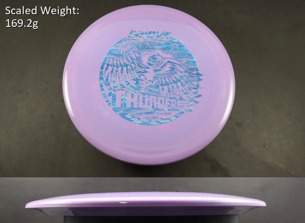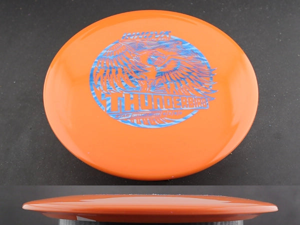 The Star Thunderbird by Innova is a power control driver that combines distance, accuracy, and dependability in one of the most trusted molds in disc golf. Star plastic offers the ideal blend of premium grip and long-lasting durability, giving the Thunderbird a consistent, stable flight that holds true throw after throw.