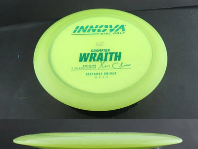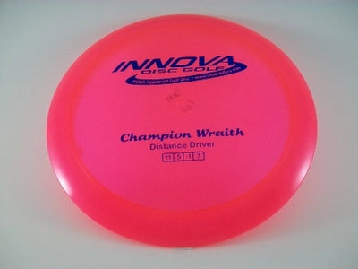 The Champion Wraith by Innova is a high-speed distance driver built for power, control, and consistency. Champion plastic delivers a firm, durable feel and slightly more overstability than other blends, giving the Wraith exceptional torque resistance and long-lasting flight reliability.