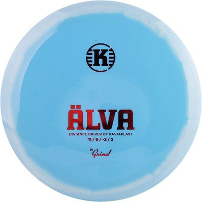 The Kastaplast Alva in K1 Grind plastic delivers the same fast, glidey distance flight the Alva is known for, now in Kastaplast’s recycled premium blend. K1 Grind uses reprocessed K1 material to create a durable, grippy plastic with a slightly chalkier feel and subtle visual variations from run to run. It maintains the dependable performance of standard K1 but may come out a touch more workable, giving players a smoother high-speed turn and an easy, controlled finish.
