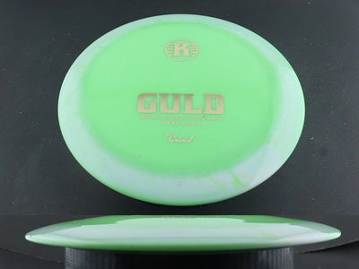 In K1 Grind, the Guld holds its line longer before finishing with a strong, dependable fade. The added firmness in this blend gives the disc a slightly more overstable personality, helping it resist unwanted turn on full-power rips or forehand drives. Players will see a penetrating, glidey push followed by a punchy fade that remains consistent in wind or under torque.