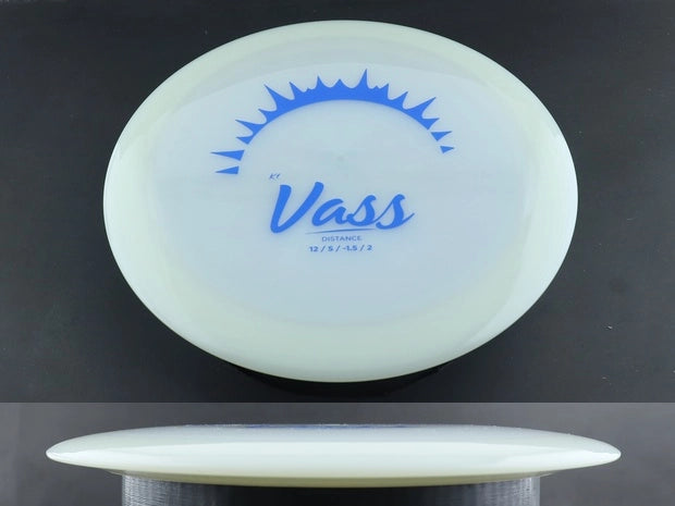 In flight, the K1 Glow Vass delivers easy high-speed turn with impressive glide and a dependable finishing fade. Thrown flat, it carries on a long, forward-moving S-curve before gently fading back. K1 Glow plastic often runs slightly more stable than standard K1, giving the Vass a bit more control and wind resistance while still offering excellent distance potential.
