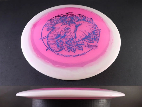 The Sapphire launches easily and stays in the air with exceptional glide. Thrown flat, it shows a smooth, controllable turn before finishing with a gentle, forward fade. In Opto Orbit, the Sapphire often feels slightly more stable than baseline or lighter blends, giving players added confidence on full-power throws while still maintaining its forgiving, distance-friendly flight.