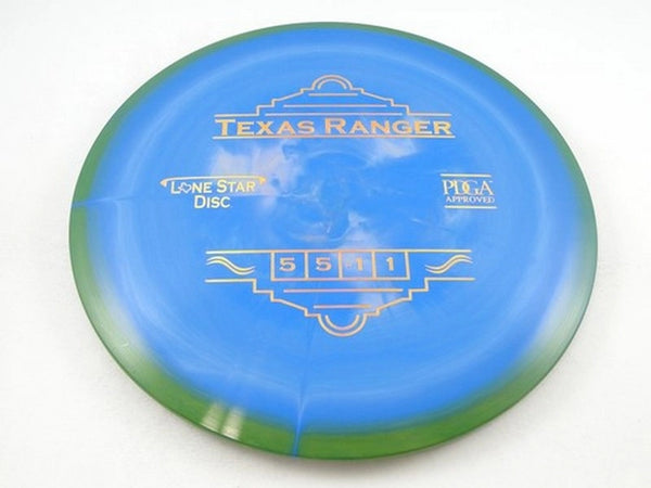 The Texas Ranger is a multi-purpose midrange that holds true to its flight numbers in most anyone's hands and regardless of the power put behind it. It flies straight with a consistent turn and reliable fade at the end. This disc is capable of being a workhorse in the beginner's thru advance player's bag.