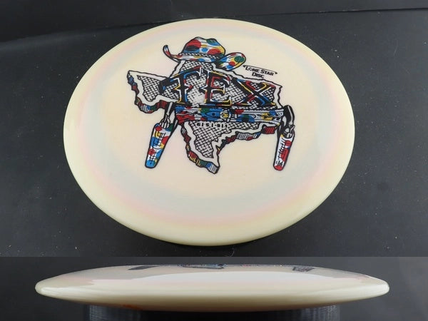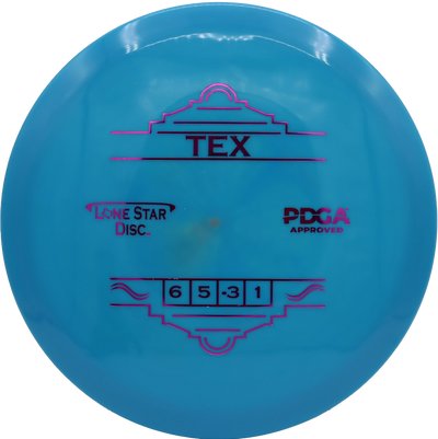Lone Star Disc The Tex is a controllable, understable fairway driver perfect for carving lines, executing hyzer-flips, and getting easy distance from low-power throws. With its consistent turn and dependable fade, The Tex makes a reliable tool for shaping woods shots, rollers, and downhill drives.