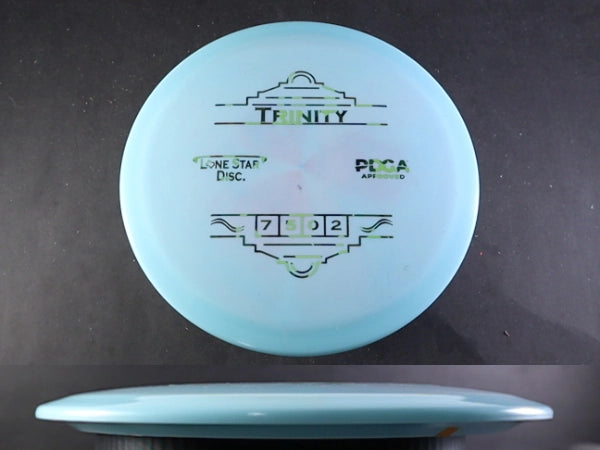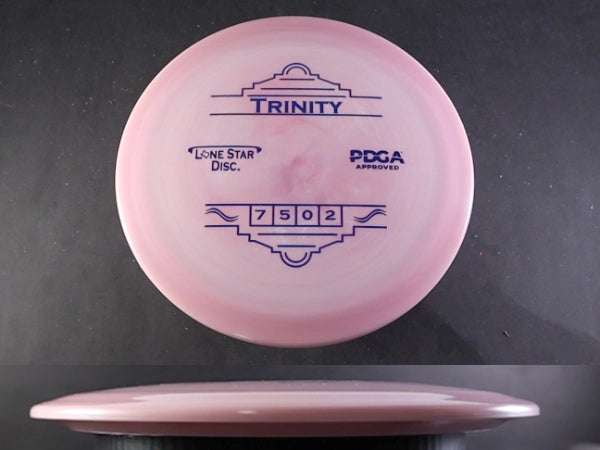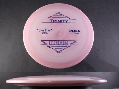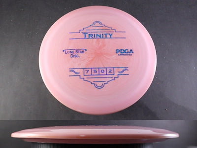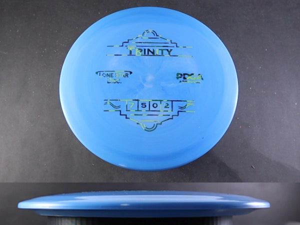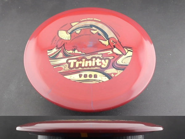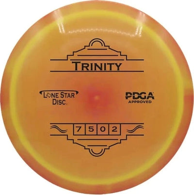 The Trinity by Lone Star Discs is a slightly overstable fairway driver designed to fit seamlessly between the Frio and Brazos. This disc is capable of handling torque and offers a reliable finish at the end of its flight, making it a dependable choice for various shot types.