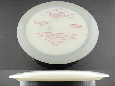 The Trinity by Lone Star Discs is a slightly overstable fairway driver designed to fit seamlessly between the Frio and Brazos. This disc is capable of handling torque and offers a reliable finish at the end of its flight, making it a dependable choice for various shot types.