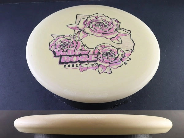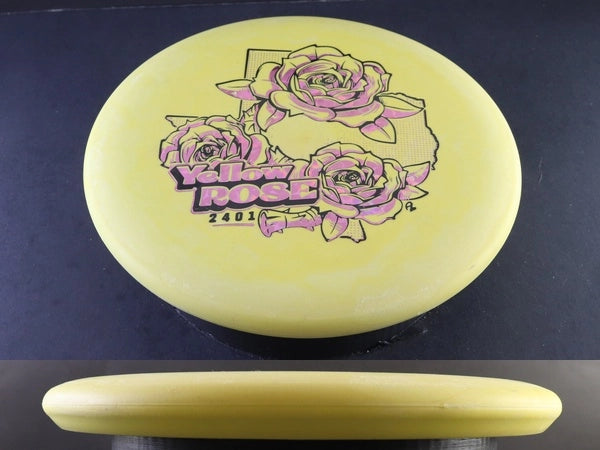 The Lone Star Discs Yellow Rose is a bead-less putter that promises a straight flight path with a slight touch of stability. It's adept at handling backhand throws right off the tee, making it a versatile choice for putts, upshots, and even drives.