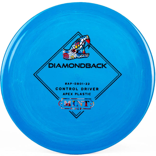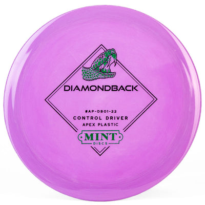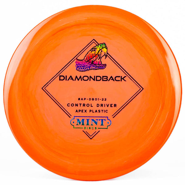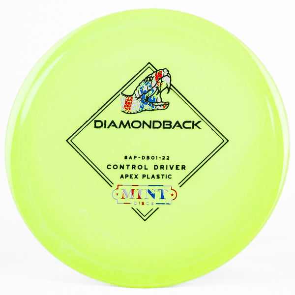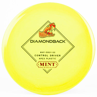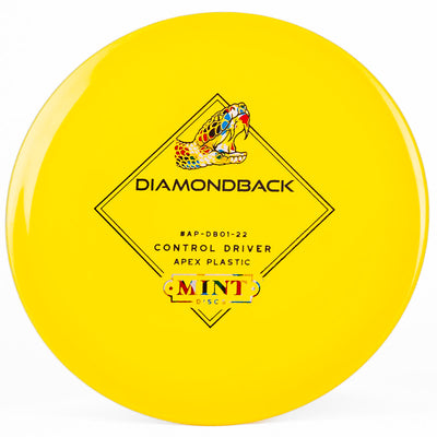 The Mint Discs Diamondback (Apex) is a stable disc golf driver that offers maximum control for any skill level of player. This disc is very moldable, allowing you to throw a variety of different angles and lines. Hyzer flips, s-curves, rollers - you name it and the Apex Diamondback can do it. A great driver for beginners to learn with. Pick up a Mint Disc Apex Diamondback today!