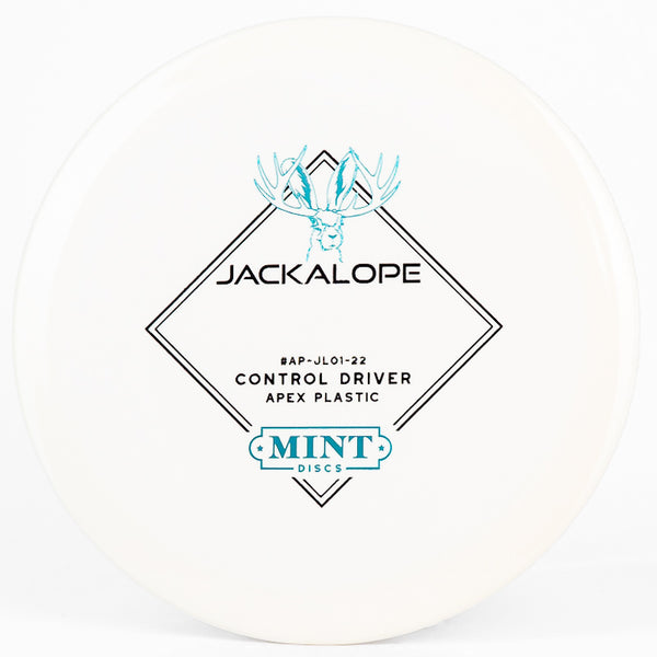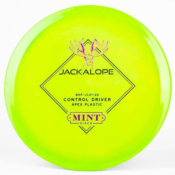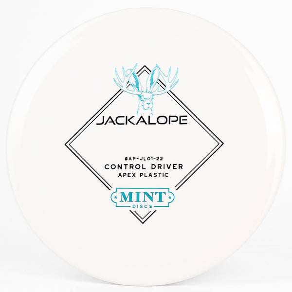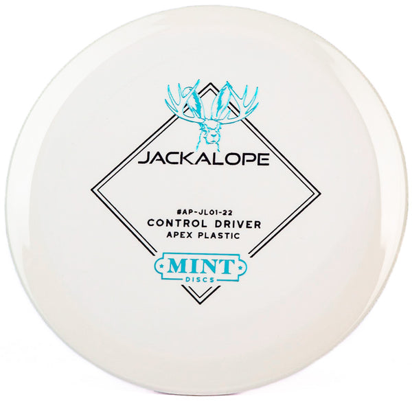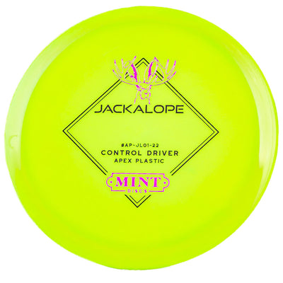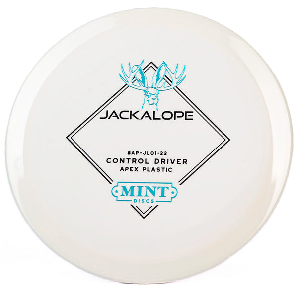 The Mint Discs Jackalope in Apex plastic is a super beginner friendly understable fairway driver that is very forgiving. Mint's Apex is their premium grade plastic blend that holds its stability well and has a slight waxy feel which allows for a clean release every time you throw it.
