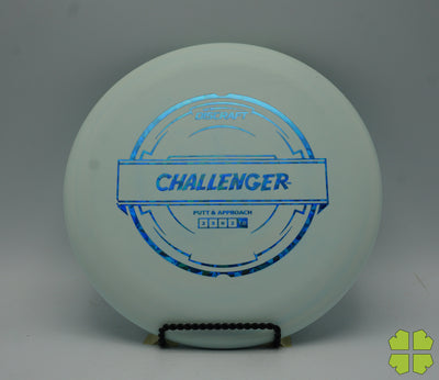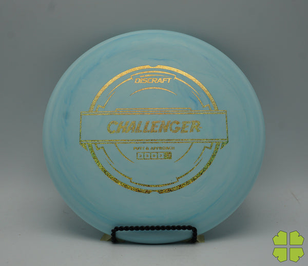 The Challenger is a tall overstable putter with a deep rim and a tiny bead. It has a Discraft stability rating of 1, and as an overstable putter is able to handle long approach shots without turning over. This putter is popular for advanced disc golfers.