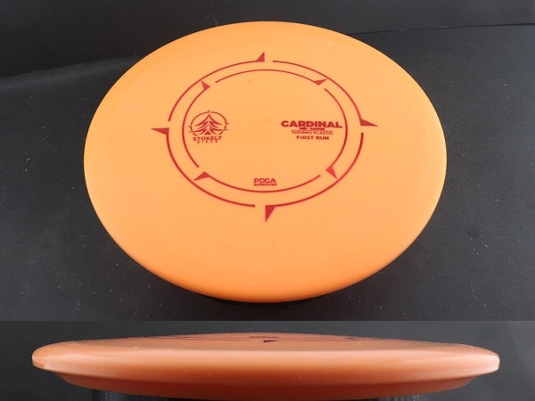 The Stokely Discs Cardinal in Thermo plastic is a stable, glidey fairway driver built for consistent control, effortless distance, and clean, accurate flights. True to its name, the Cardinal is vibrant, balanced, and reliable — a versatile driver that performs beautifully across a range of throwing styles. The Thermo blend offers a premium, durable feel with a grippy, slightly firm texture that provides excellent control and torque resistance for both power and finesse shots.