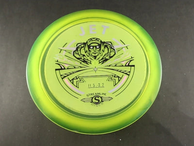 The Streamline Jet in Proton SL plastic is an understable distance driver engineered for smooth control, effortless glide, and easy distance. Designed to help players achieve long, accurate flights without requiring elite arm speed, the Jet delivers clean turnover lines, reliable hyzer flips, and consistent tailwind performance. The Proton SL blend combines the clarity and durability of Proton plastic with a slightly lighter weight, giving players added carry and a smooth, premium feel that lasts.