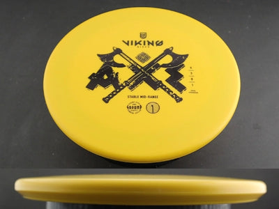 The Viking Discs Axe is a beadless midrange built for precise control, with a slow, glidey flight that feels more like a putter than a typical mid. In Viking’s Ground plastic—a flexible, tacky base blend designed for all-weather grip—the Axe offers excellent hand feel and breaks in quickly to develop a straighter, more workable flight over time.