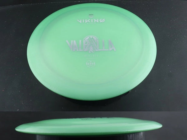 The Valhalla is a stable distance driver. It has a great mix of glide and stability to hold up on powerful throws. This disc has been described as "effortless to point, shoot and fade". Get extra distance with less effort by throwing a Valhalla.