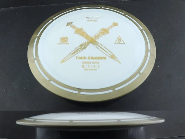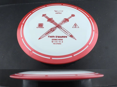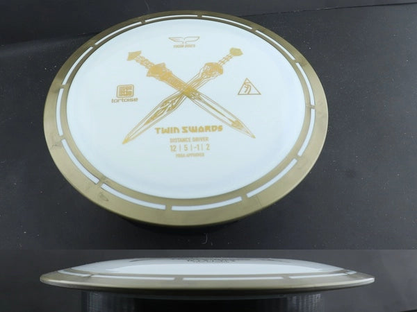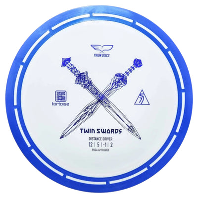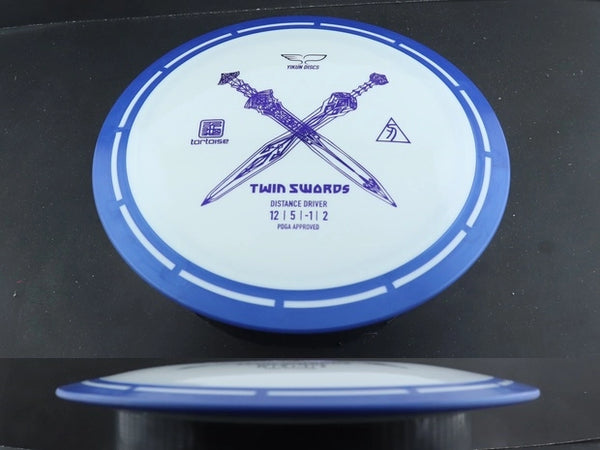 The Twin Swords is the first roll-out disc model from Yikun in their Tortoise Line plastic which is their overmold "Shell" configuration. The rim is attached to the flight plate through their own, unique method, giving the discs an amazing look. The Twin Swords is a distance driver with a Speed-12 rating and wide, yet comfortable rim width. The Twin Swords is a unique and exciting offering to the disc golf world, earning a spot in the bag for players at all levels.